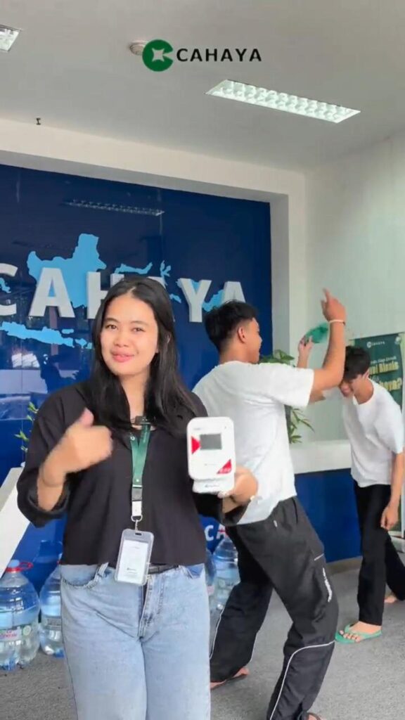 “Nah guys, daripada kayak mereka, rebutan bayar, mending langsung aja pakai Soundbox dari Cahaya biar cepat bayarnya!”