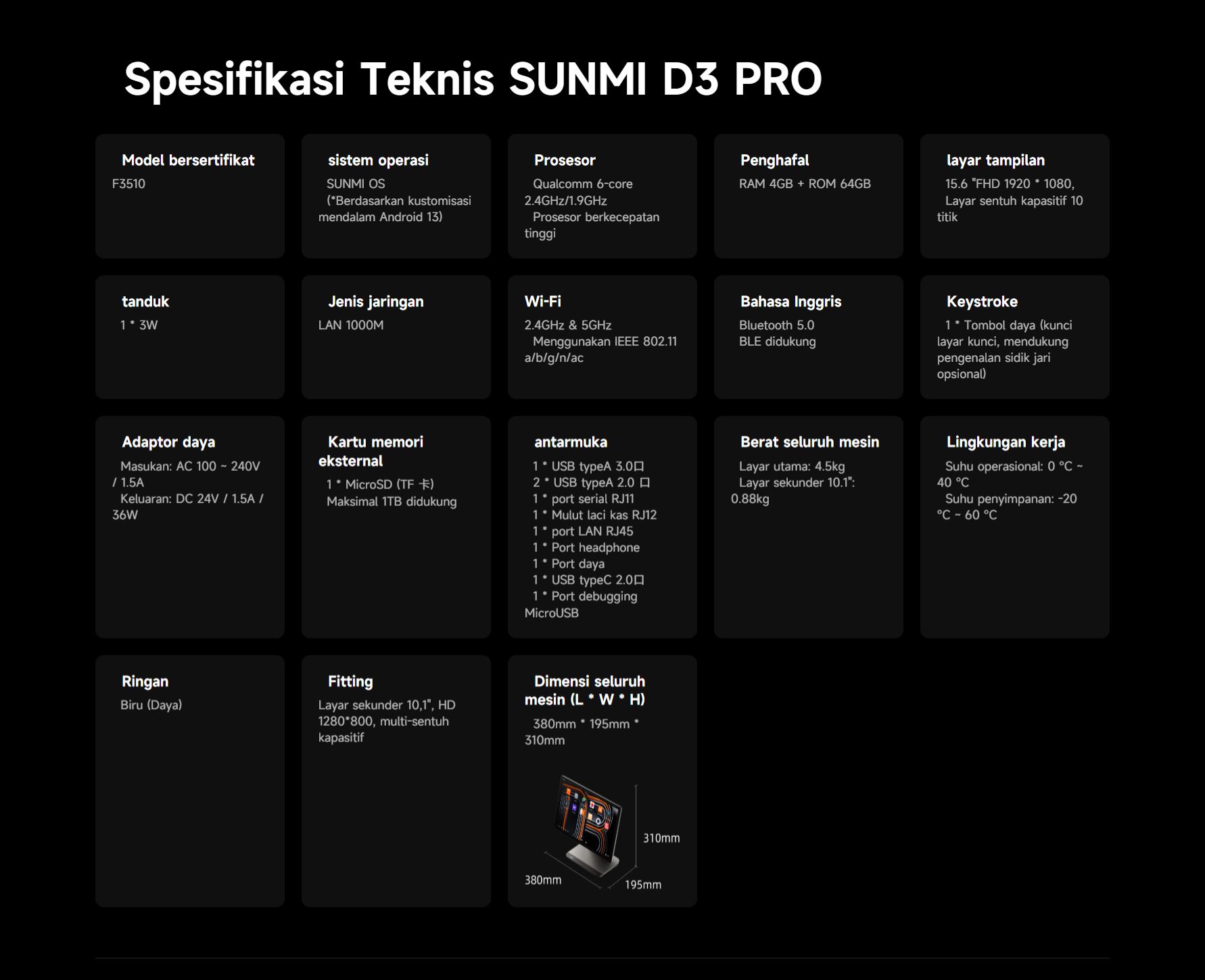 Terminal Seluler Cerdas SUNMI D3 PRO