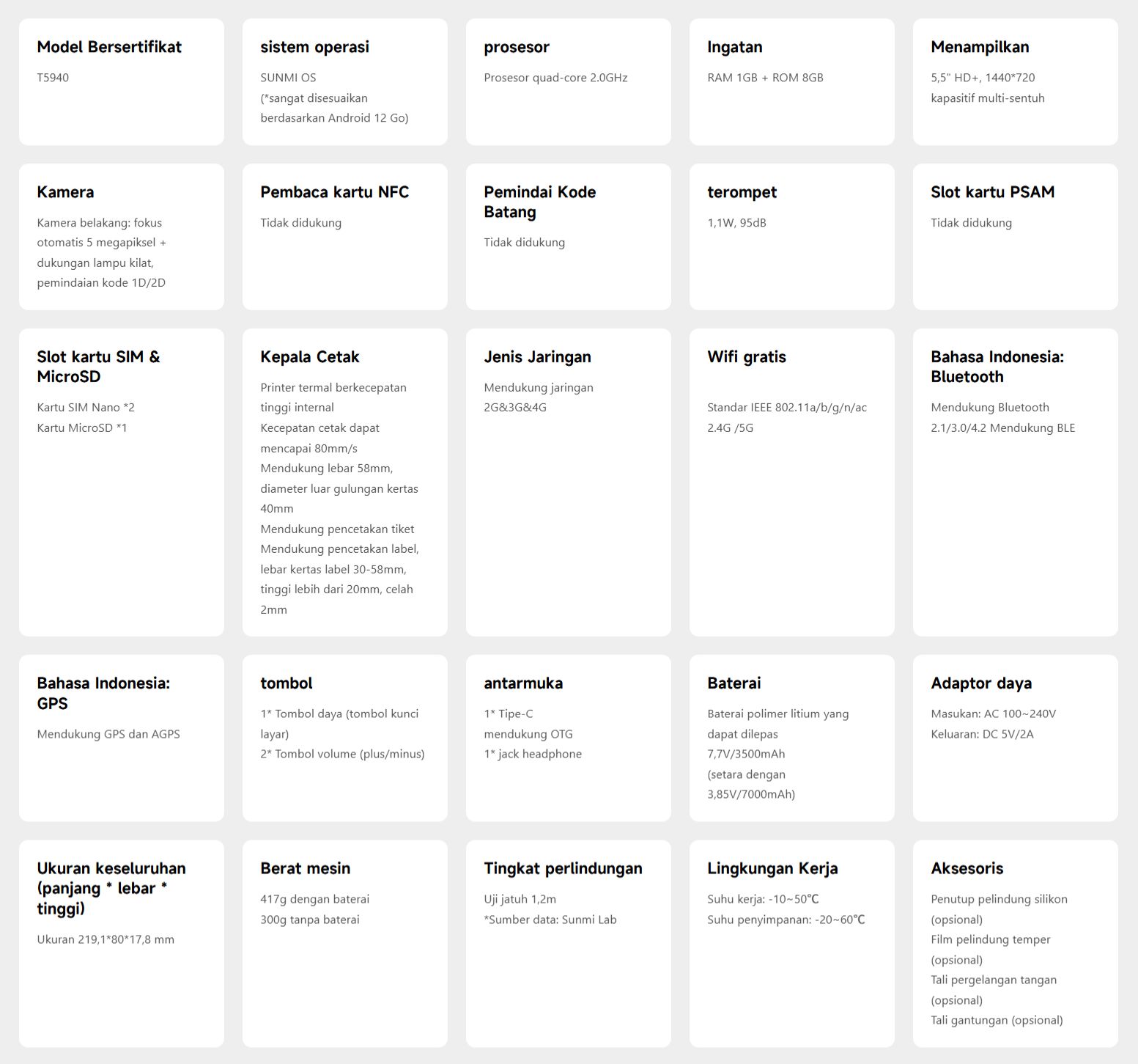 Terminal Seluler Cerdas SUNMI V2s